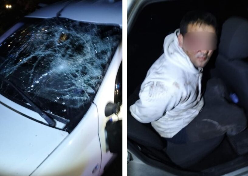 Молодой человек колошматил по белой «Ладе» руками и ногами. Сперва он расправился с зеркалом заднего вида, оторвав его. Затем разбил лобовое и заднее стекла и как следует помял двери. Видимо, удовлетворившись результатом своей атаки, хулиган решил порезвиться еще и в салоне авто и залез внутрь.