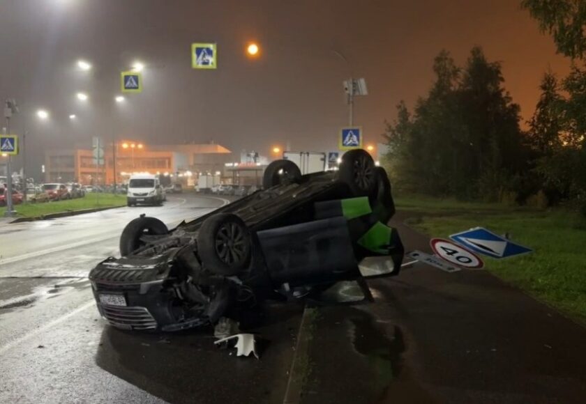 Пьяное ДТП произошло минувшей ночью во Всеволожском районе Ленобласти: каршеринговый автомобиль лег на крышу после столкновения со встречной машиной.