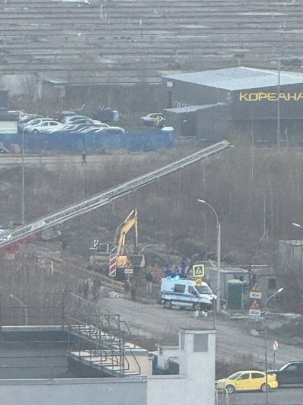 Жители города Кудрово Всеволожского района Ленинградской области вечером 30 марта наблюдали за спасательной операцией на пустыре, где идет стройка.