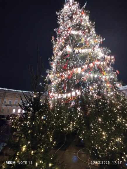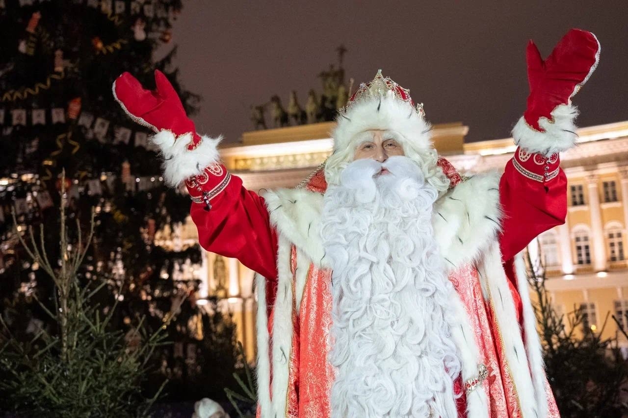 Губернатор Беглов, отчитываясь в соцсетях о мероприятии, рассказал, что огни на елке зажег Дед Мороз из Великого Устюга. Вероятно, это был заместитель главного волшебника страны: тот в данный момент путешествует по России на поезде и до Северной столицы доедет только к Рождеству. Сегодня он, по расписанию, должен зажигать праздничные огни в городе Саранске.