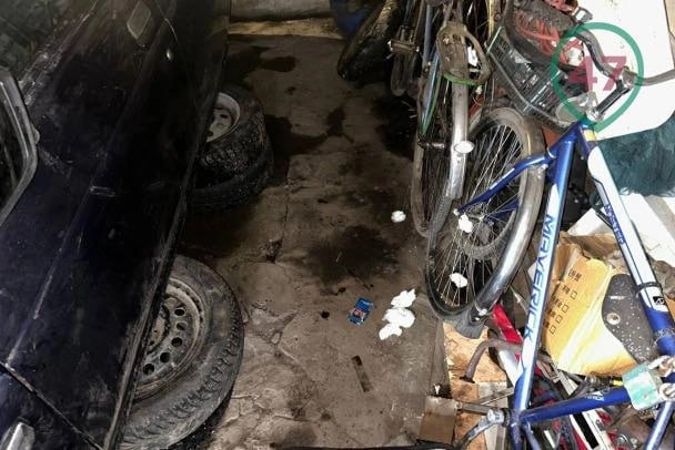 29 ноября молодые люди пришли в арендованный гараж, чтобы заняться ремонтом старого автомобиля. Обстановку внутри помещения, из которого их позже выносили, запечатлело фото.