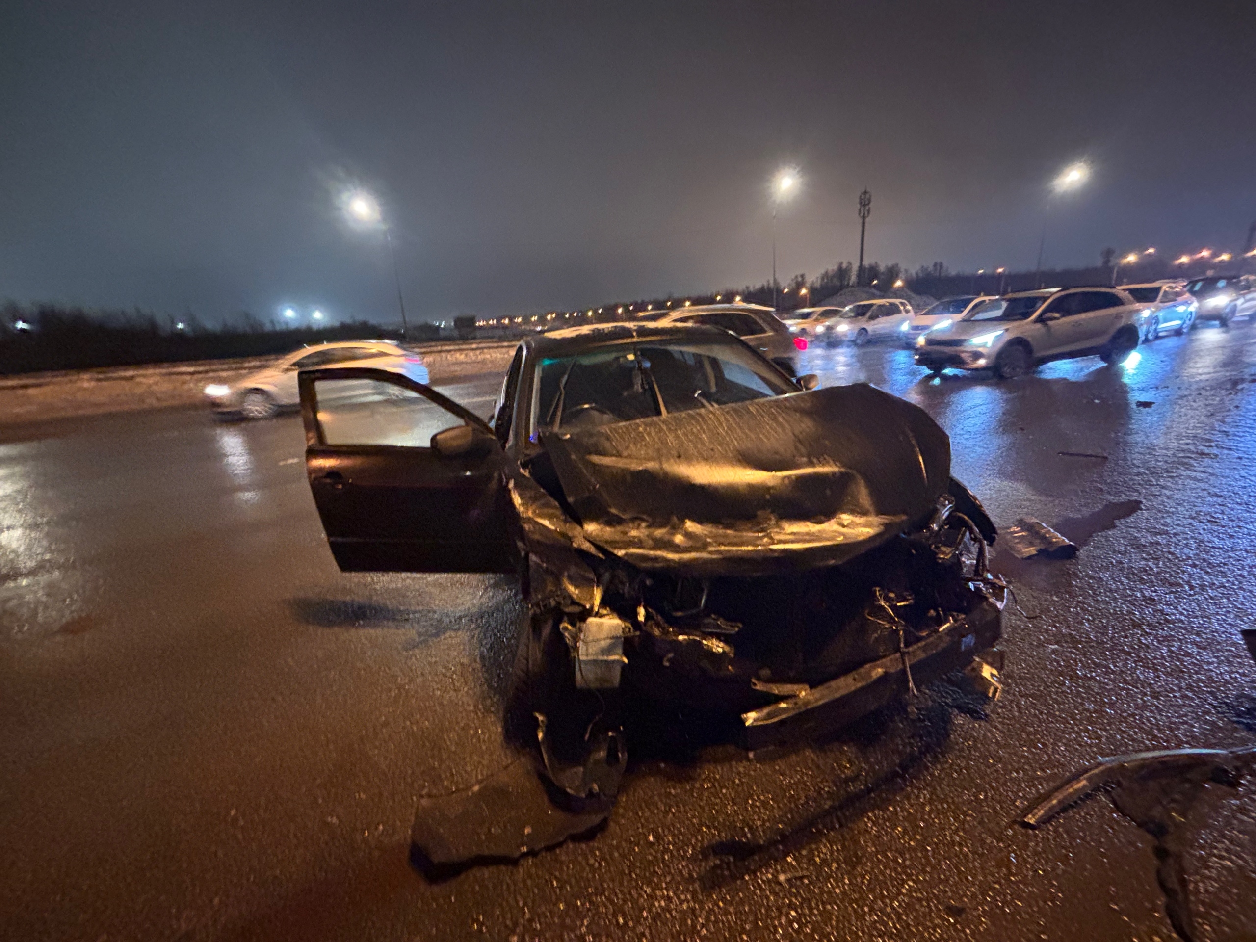 Как рассказал в группе «ДТП-ЧП-СПб» ВКонтакте водитель, ставший главным участником аварии, вечером 18 января он ехал в крайнем правом ряду КАД на участке между Витебским проспектом и Софийской улицей.
