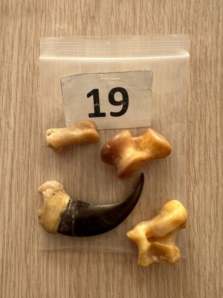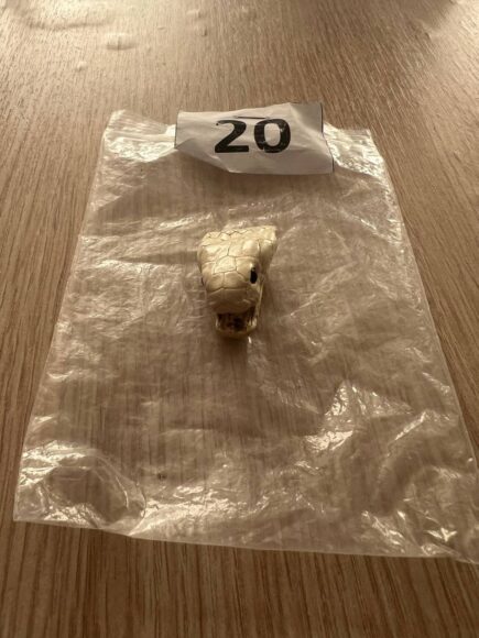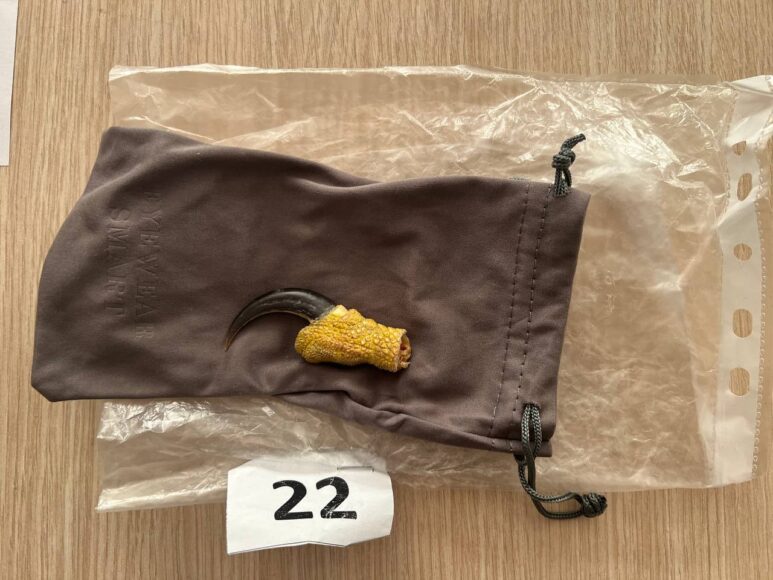 В двух чемоданах, рюкзаке и карманах пассажира нашли клыки, когти, фрагменты рогов и бивней мамонта, высушенную голову змеи – всего 67 предметов. Все они были направлены на экспертизу, рассказала пресс-служба Пулковской таможни.