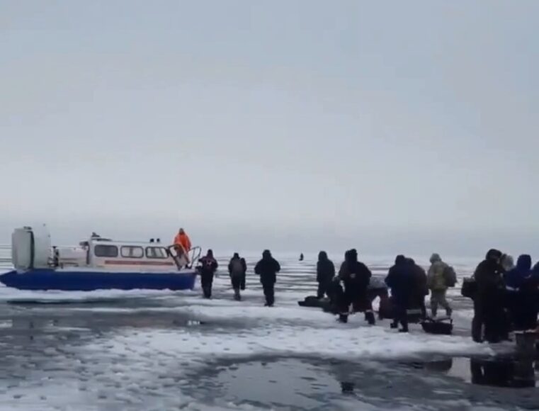 Людей доставили на берег при помощи катеров на воздушной подушке.