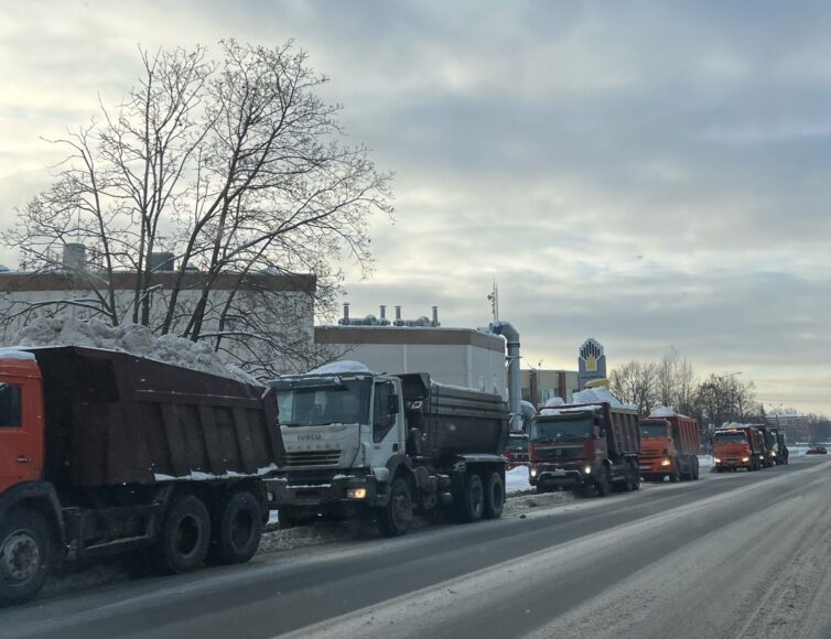 В среднем каждый день с петербургских улиц вывозится 26 тысяч кубометров снега. Всего с начала года вывезено 159 тысяч кубометров.