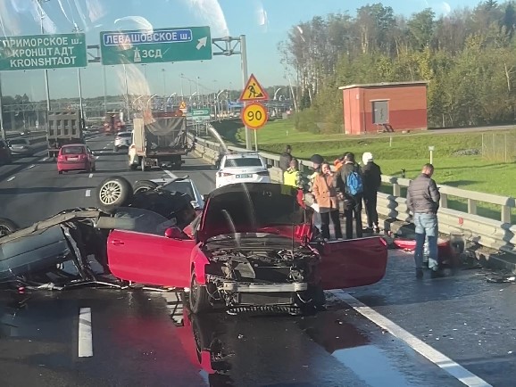 ДТП произошло около 8 часов утра на 12-м километре внешнего кольца КАД, перед съездом на Западный скоростной диаметр.
