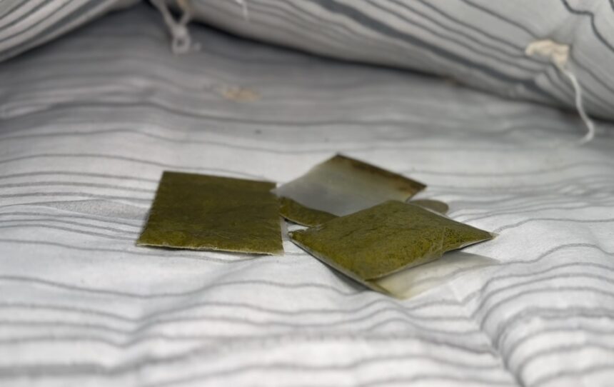 Пока паспорта и бумаги изучали представители миграционной службы, кинолог с овчаркой обошли все помещения опустевшей гостиницы. Судя по видео, снятому во время рейда, чуткий собачий нюх уловил припрятанные кем-то между матрасами пакетики с неизвестным веществом.
