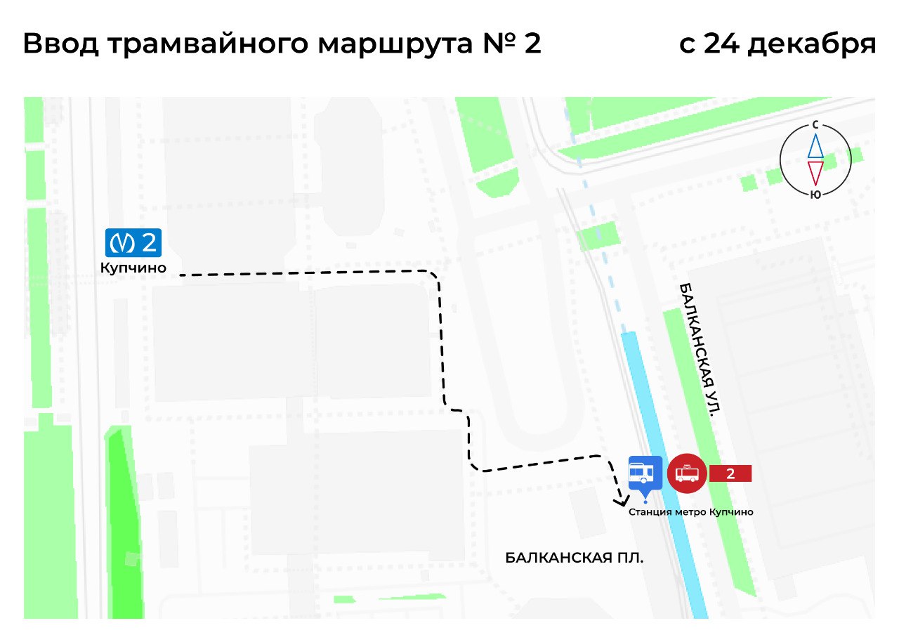С 15:00 сегодняшнего дня трамваи «Славянка» начнут регулярное движение с пассажирами по маршруту №2 – от станции метро «Купчино» до Валдайской улицы в Шушарах и обратно.