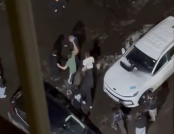 За ночными разборками наблюдали жители домов №63 и 67 на Шоссе в Лаврики. Во дворе около двух часов конфликтовали двое взрослых и большая орава подростков, мальчиков и девочек.