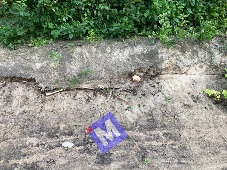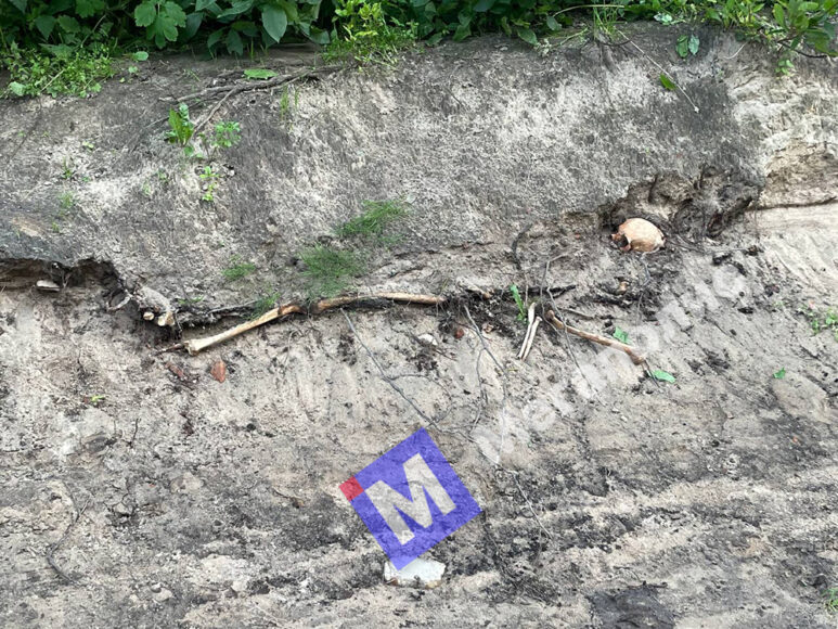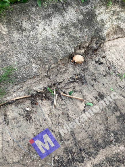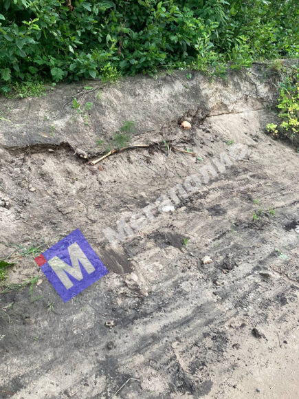 Фотографиями, на которых отчетливо видны торчащие из земли череп и кости, с «Мегаполисом» поделился читатель Даниил. 11 июля он пришел на могилу родственников, а на обратном пути решил пройтись вдоль берега Смоленки – и наткнулся на пугающую находку.