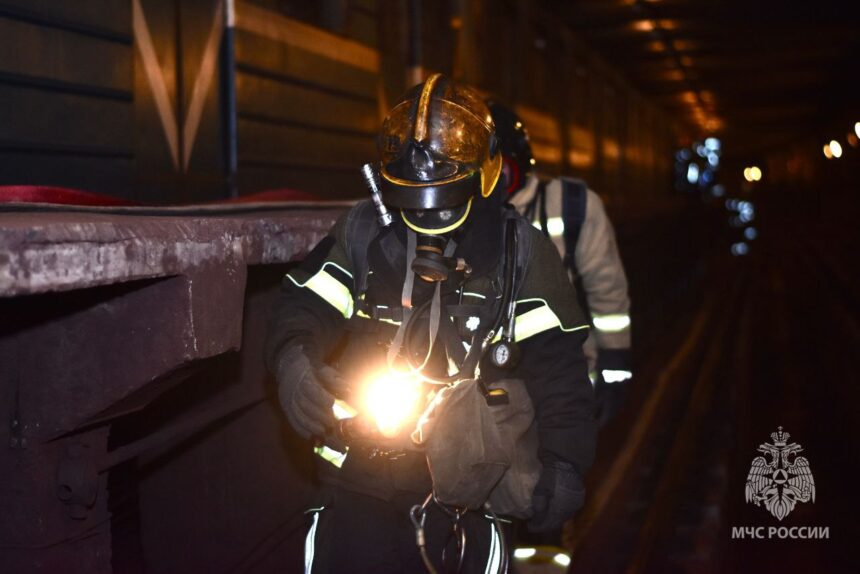 Пожарные и спасатели отправились в тоннель, нашли и вывели оттуда всех «пострадавших» (некоторых – вынесли на носилках), а затем потушили пожар.