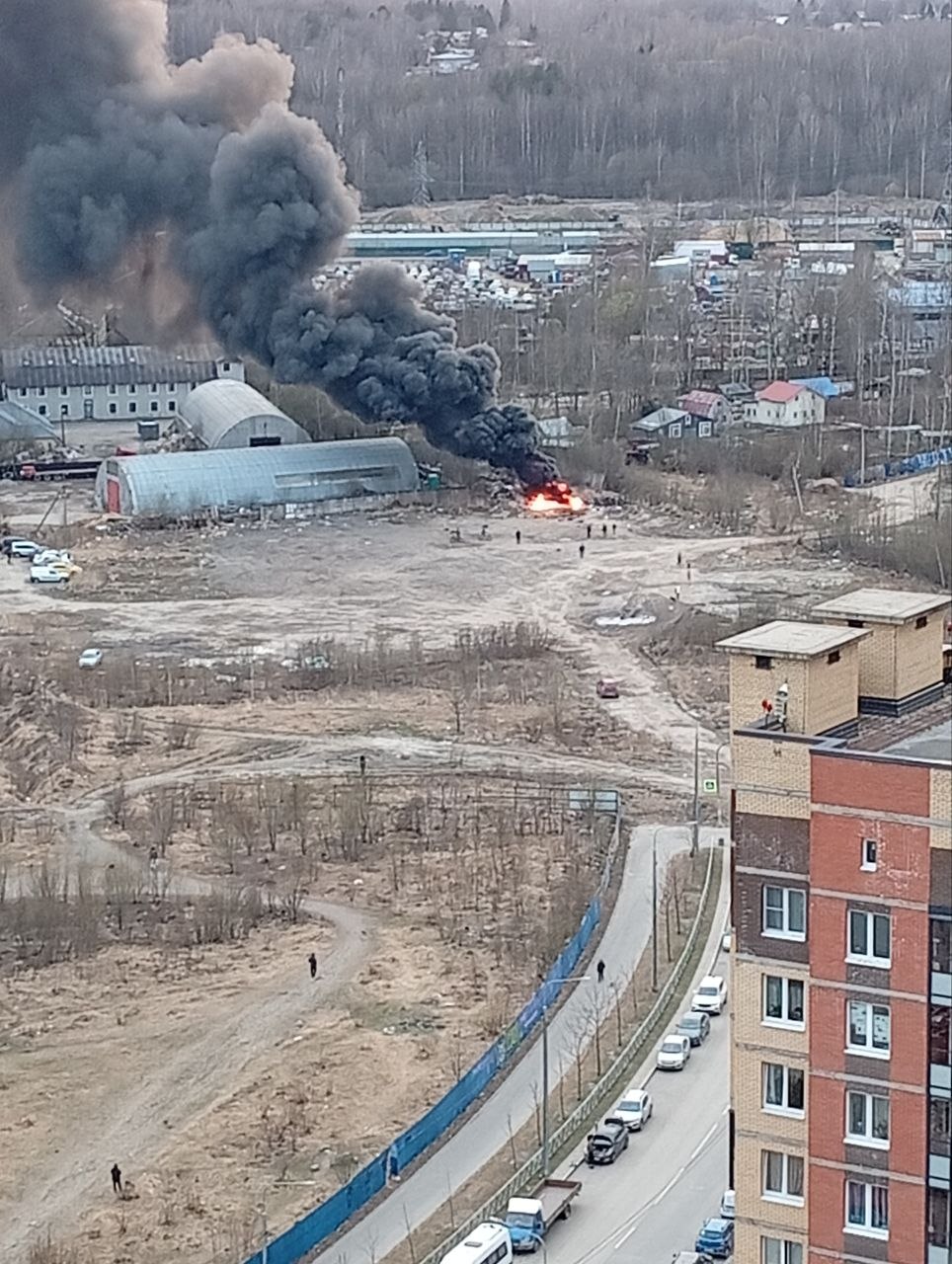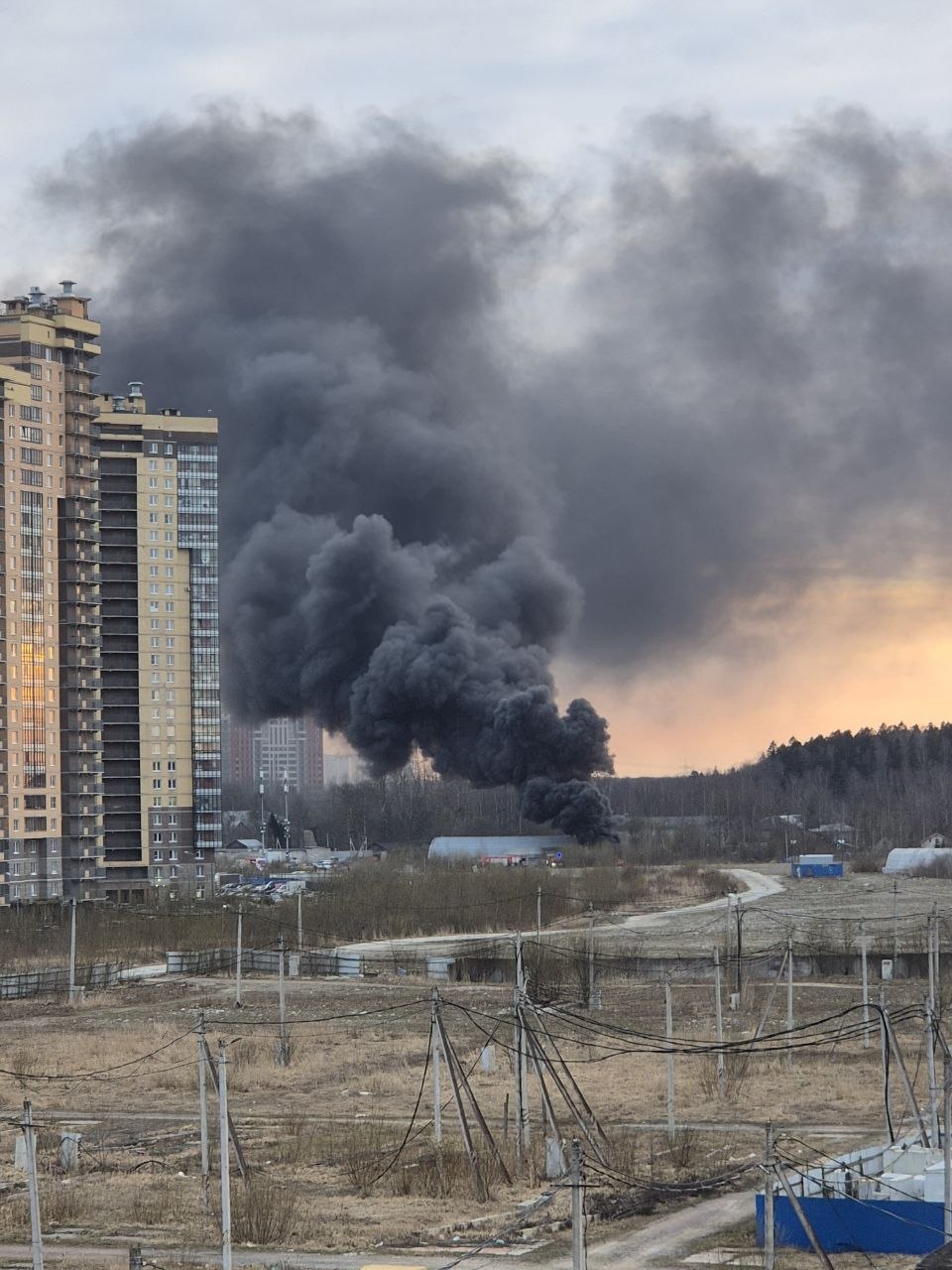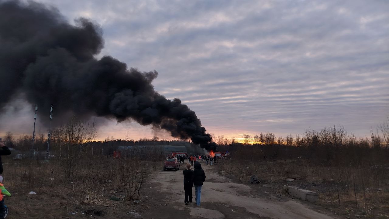 Пожар произошел около семи часов вечера в районе Торфяное. Клубы черного дыма были хорошо видны жителям многоэтажек в соседнем районе Парнас. Местные жители жаловались в соцсетях на неприятный запах.