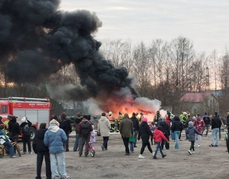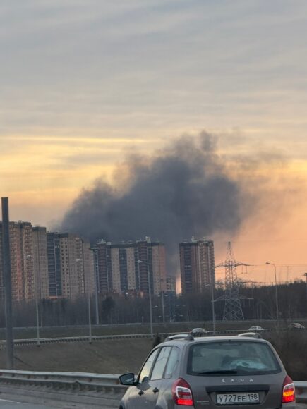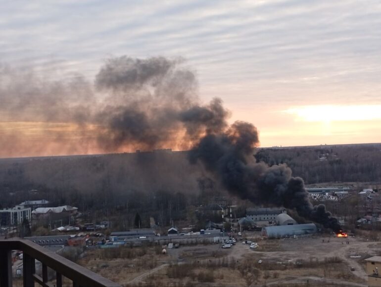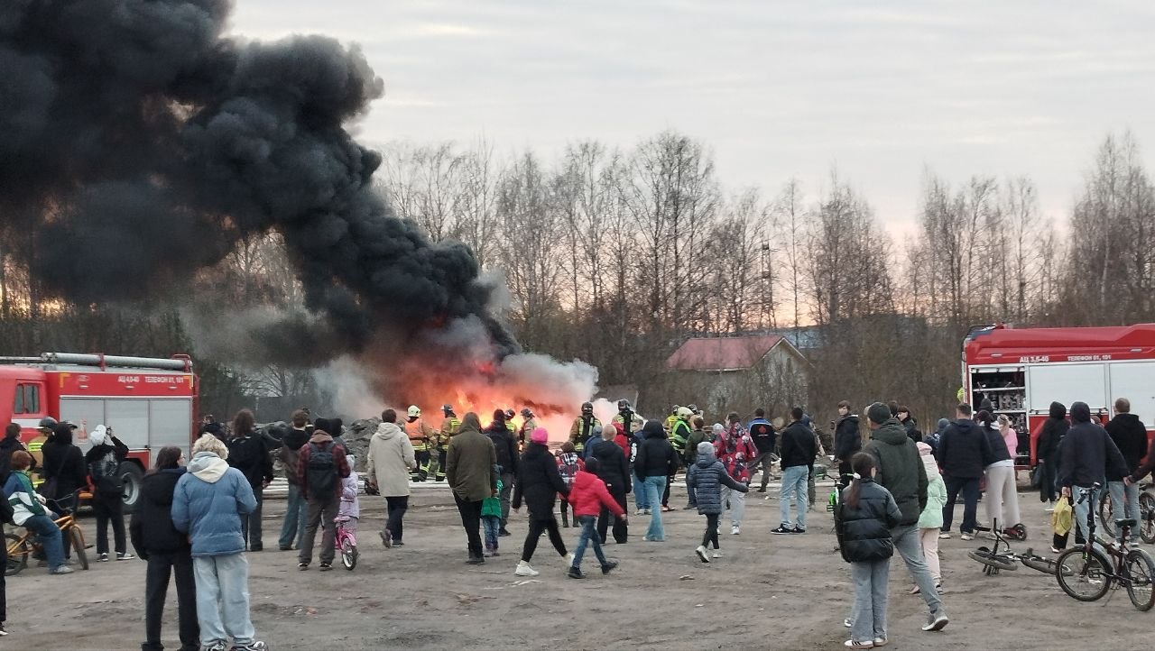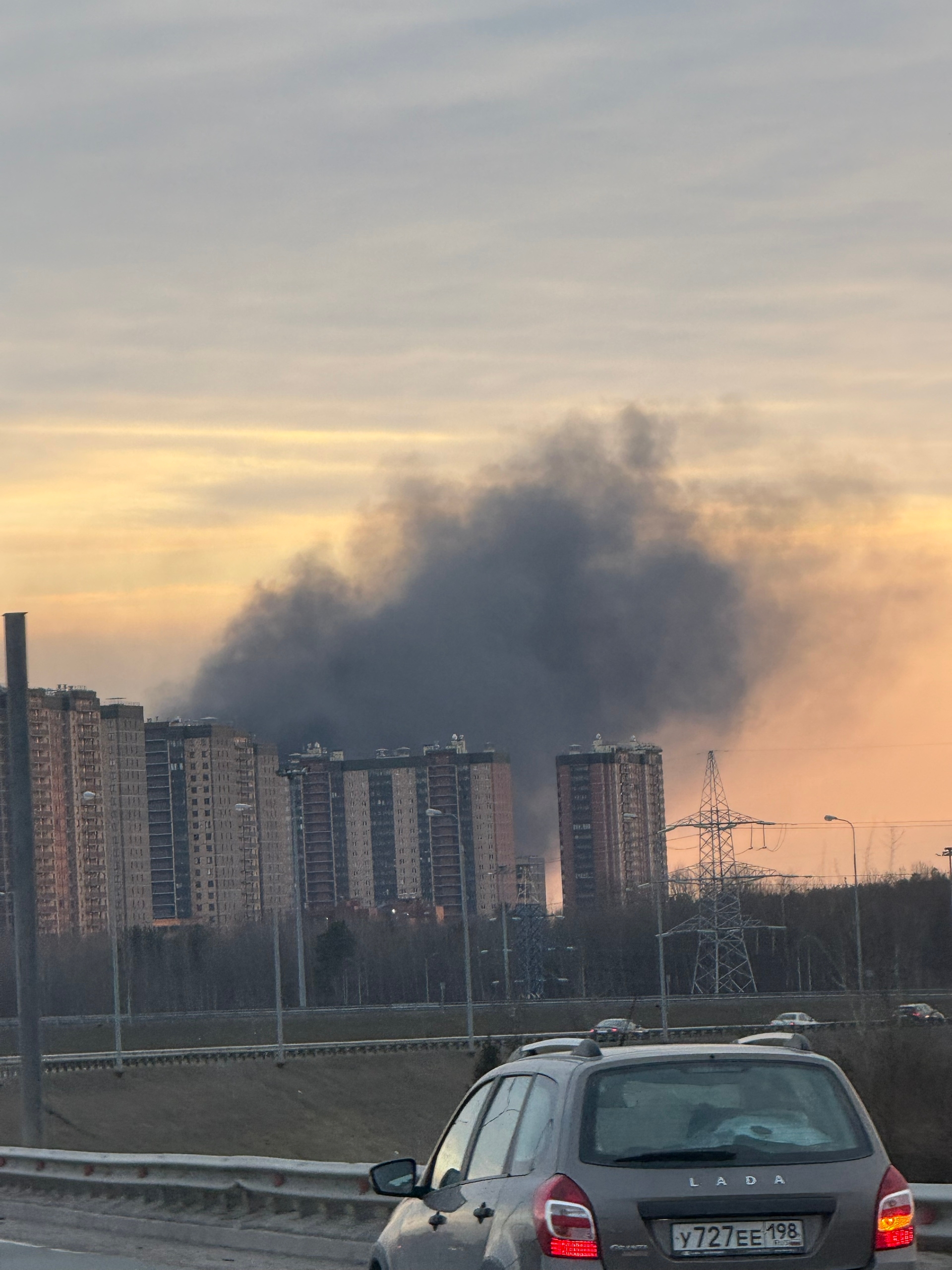 Пожар произошел около семи часов вечера в районе Торфяное. Клубы черного дыма были хорошо видны жителям многоэтажек в соседнем районе Парнас. Местные жители жаловались в соцсетях на неприятный запах.