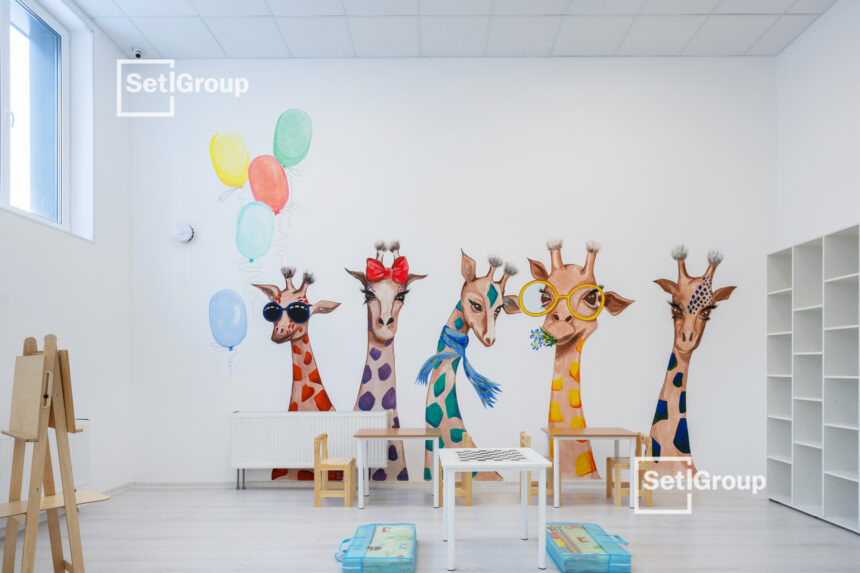 В жилом комплексе "Солнечный город. Резиденции" готовится к открытию первый детский клуб Setl Group. Это помещение, предназначенное специально для проведения детских праздников, игр и дней рождения. Изюминкой клуба стали яркие селфи-стены с изображениями веселых жирафов.