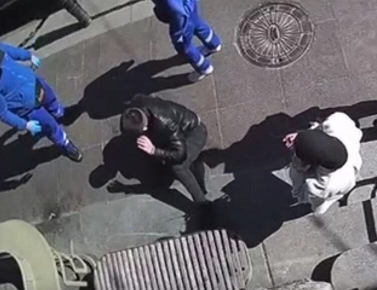 На видео, которое она опубликовала, медики будят мужчину, который спит не на скамейке, а на асфальте. В момент, когда он, отказавшись от их помощи, отходит к дому - видимо, чтобы помочиться, запись обрывается.