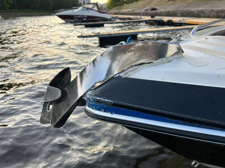 В результате навала пострадавших нет. У теплохода на левом борту осталась вмятина, повреждено лакокрасочное покрытие. На маломерном судне погнут железный якорь и присутствуют сколы кормы.
