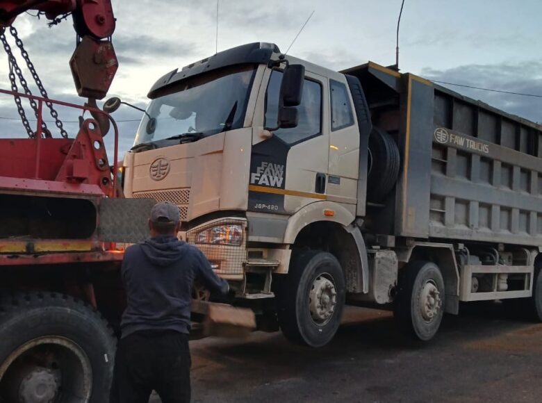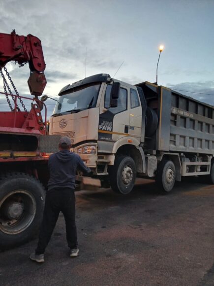 Инспекторы остановили самосвал, заподозрив водителя в нарушении правил перевозки тяжеловесных грузов. Сидевшего за рулем человека попросили пройти весовой контроль.