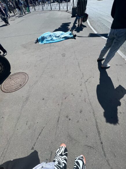 По словам другой собеседницы, накрытое тканью тело лежит у перекрестка проспектов Науки и Гражданского уже часа два-три. Судя по обуви, погибший – мужчина. Что случилось, пока не известно.