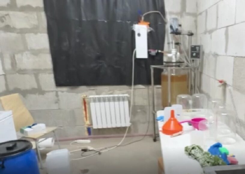На днях в дом нагрянули сотрудники управления по контролю за оборотом наркотиков вместе с бойцами Росгвардии. В лаборатории нашли три контейнера с прекурсорами общей массой почти 6 килограммов, 50‑литровую бочку и такого же объема химический реактор, десятки канистр и бутылок с разными жидкостями, химическую посуду, вакуумный насос, магнитную мешалку, средства индивидуальной защиты.