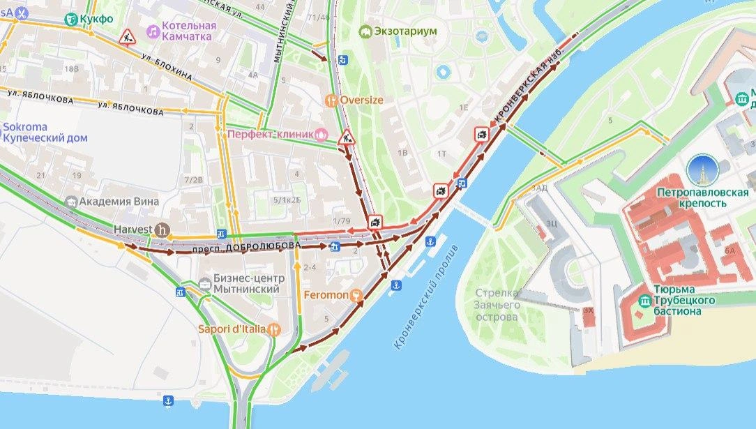 Эта авария спровоцировала с сутра серьезную пробку на Кронверкской набережной: водители, безуспешно пытаясь проехать мимо места ДТП, вынуждены были разворачиваться, уточняет "Фонтанка".