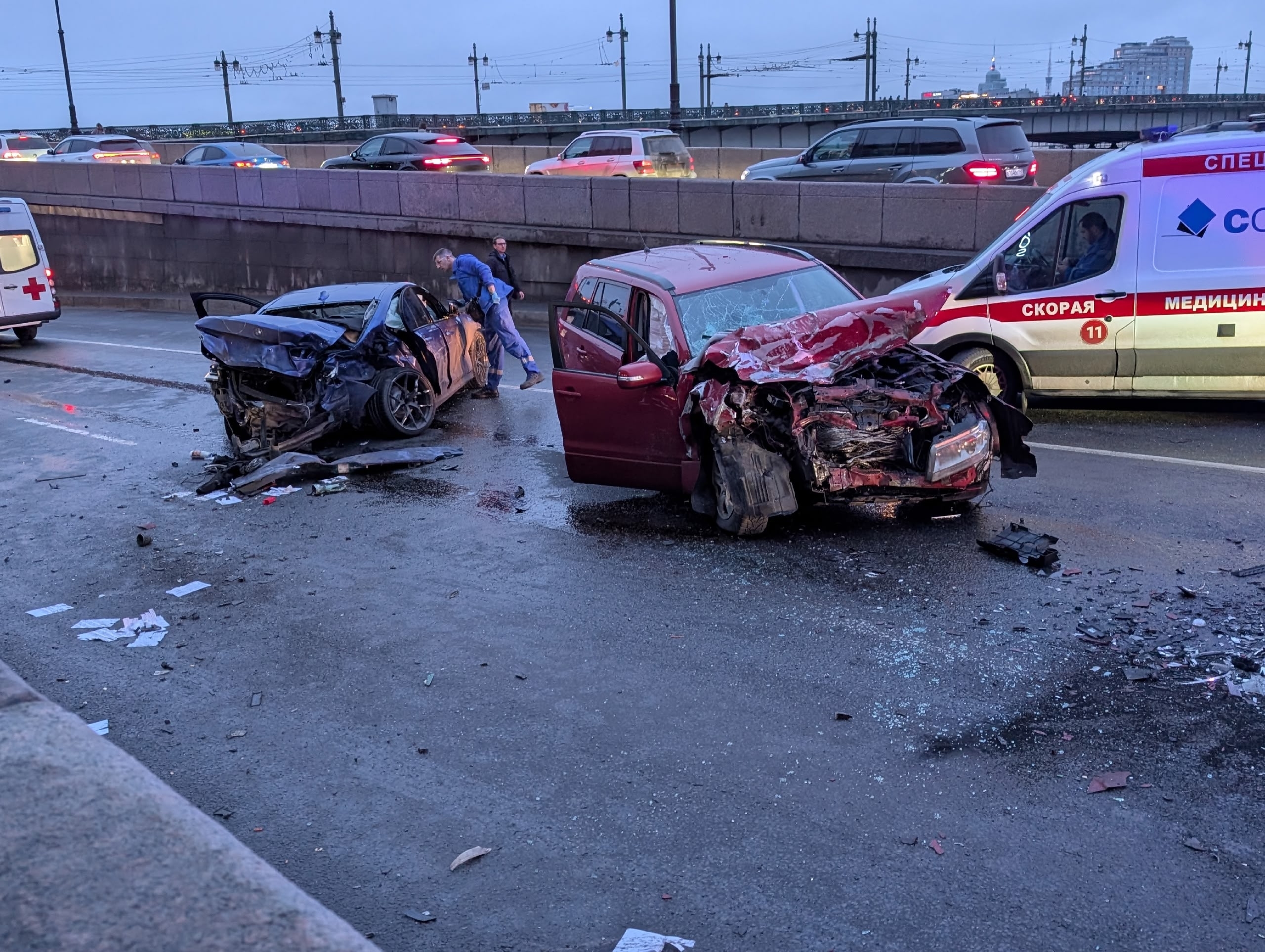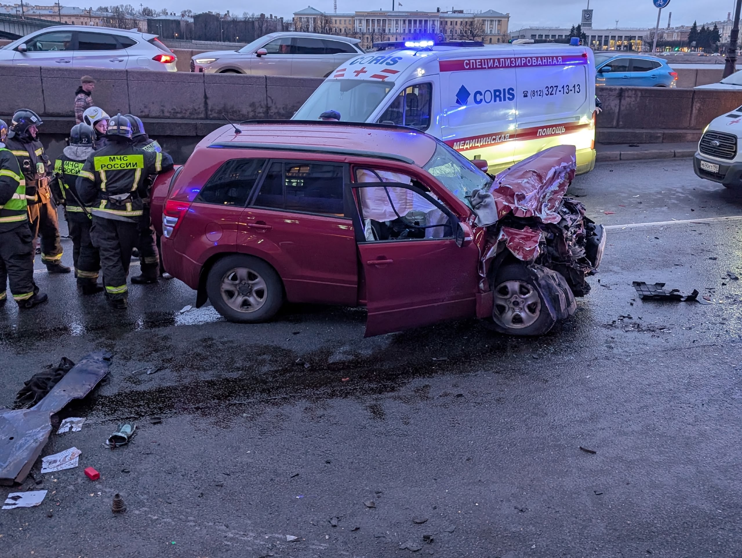 ДТП произошло сегодня в 19:20 возле дома №32 по Воскресенской набережной (окрестности станции метро «Чернышевская»).