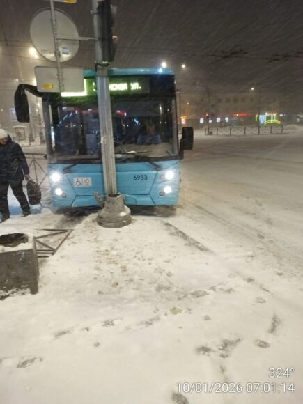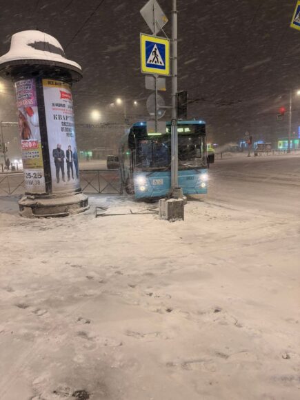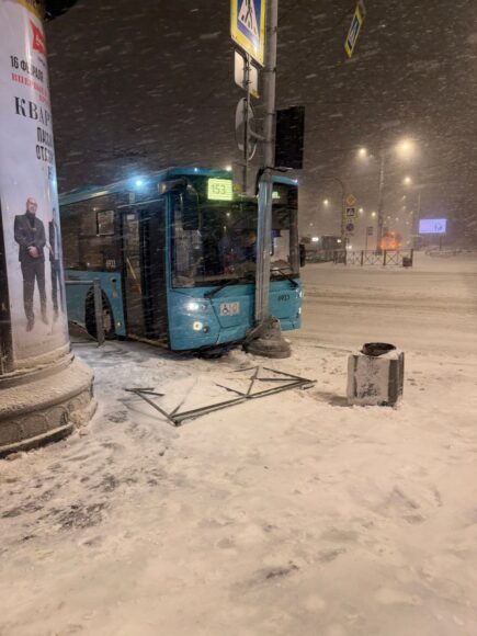 ДТП произошло сегодня утром – к этому времени до Северной столицы добрался балканский циклон «Фрэнсис», в городе начался залповый снегопад, который четко дал понять, что аварий в этот субботний день будет много. Автобус, следовавший по маршруту №153 (Хасанская улица – проспект Наставников) стал первой ласточкой. Ну или одной из первых. Фотографии с места аварии появились в группе «ДТП-ЧП-СПб» ВКонтакте.