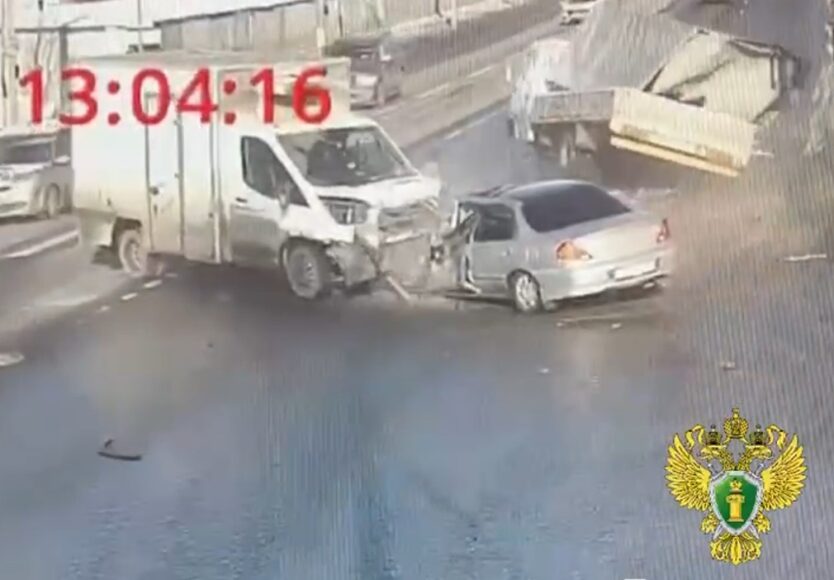 Сегодня пресс-служба прокуратуры показала еще одну видеозапись момента ДТП, снятого уличной камерой наблюдения. Оказалось, что травмы, полученные 21-летним водителем легковушки, были оценены медиками как тяжкий вред здоровью, и по факту аварии было возбуждено уголовное дело.