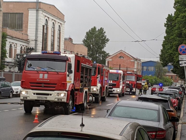 Арсенальную набережную затянуло дымом в десятом часу утра. Горожане наблюдали, как к зданию завода «Арсенал» стягиваются пожарные машины.