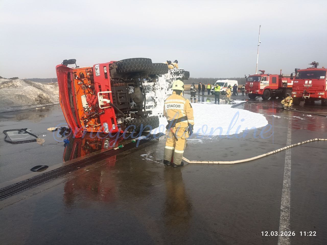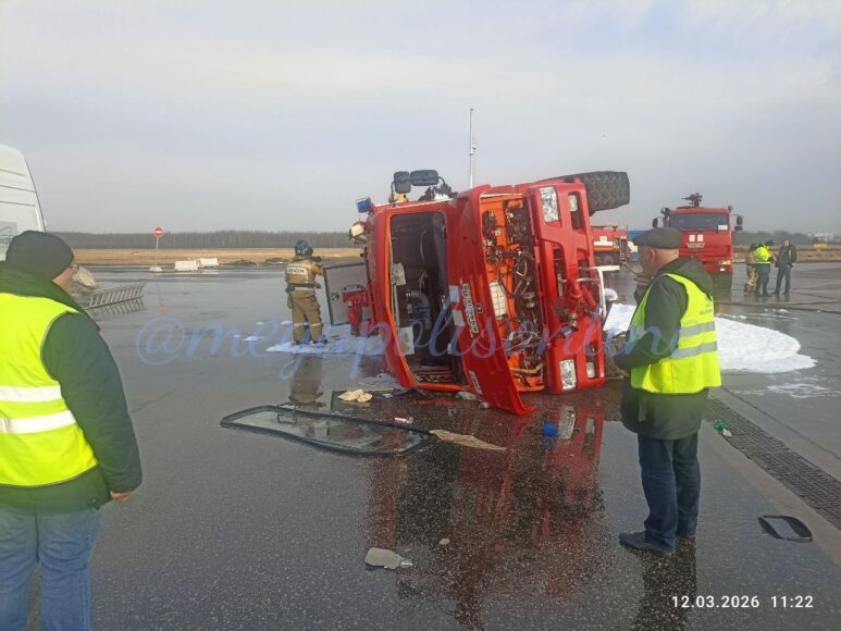 На территории петербургского аэропорта произошло ДТП с участием пожарной техники.