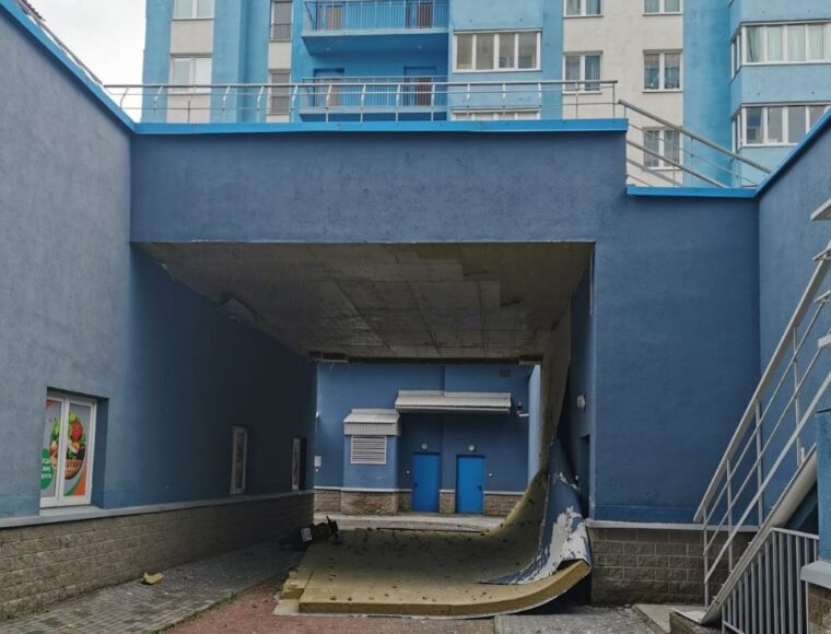 Обрушение заметили и сняли на видео подписчики телеграм-канала «Наш Парнас». Оно произошло между двумя корпусами дома №17 на Заречной улице – ЖК «Шуваловский дуэт», который в народе из-за сине-бело-голубой окраски многоэтажек называют «сгущенкой».