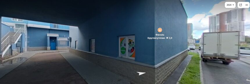Арка расположена за овощным магазином «Фасоль». Ее образует перекрытие, соединяющее две части верхнего дворика, который находится на крышах домов-пристроек.