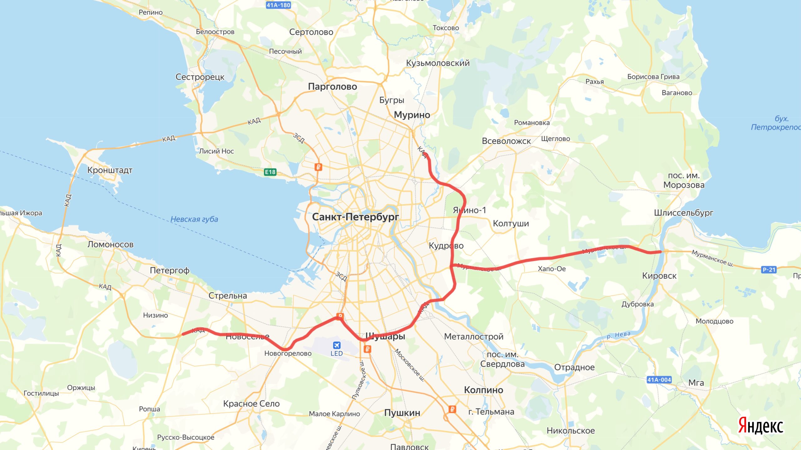 Речь идет об участке КАД между развязками с Ропшинским шоссе и Пискаревским проспектом (с 94-го по 34-й километр) и участке «Колы» от КАД до Кировска (с 12-го по 41-й километр).