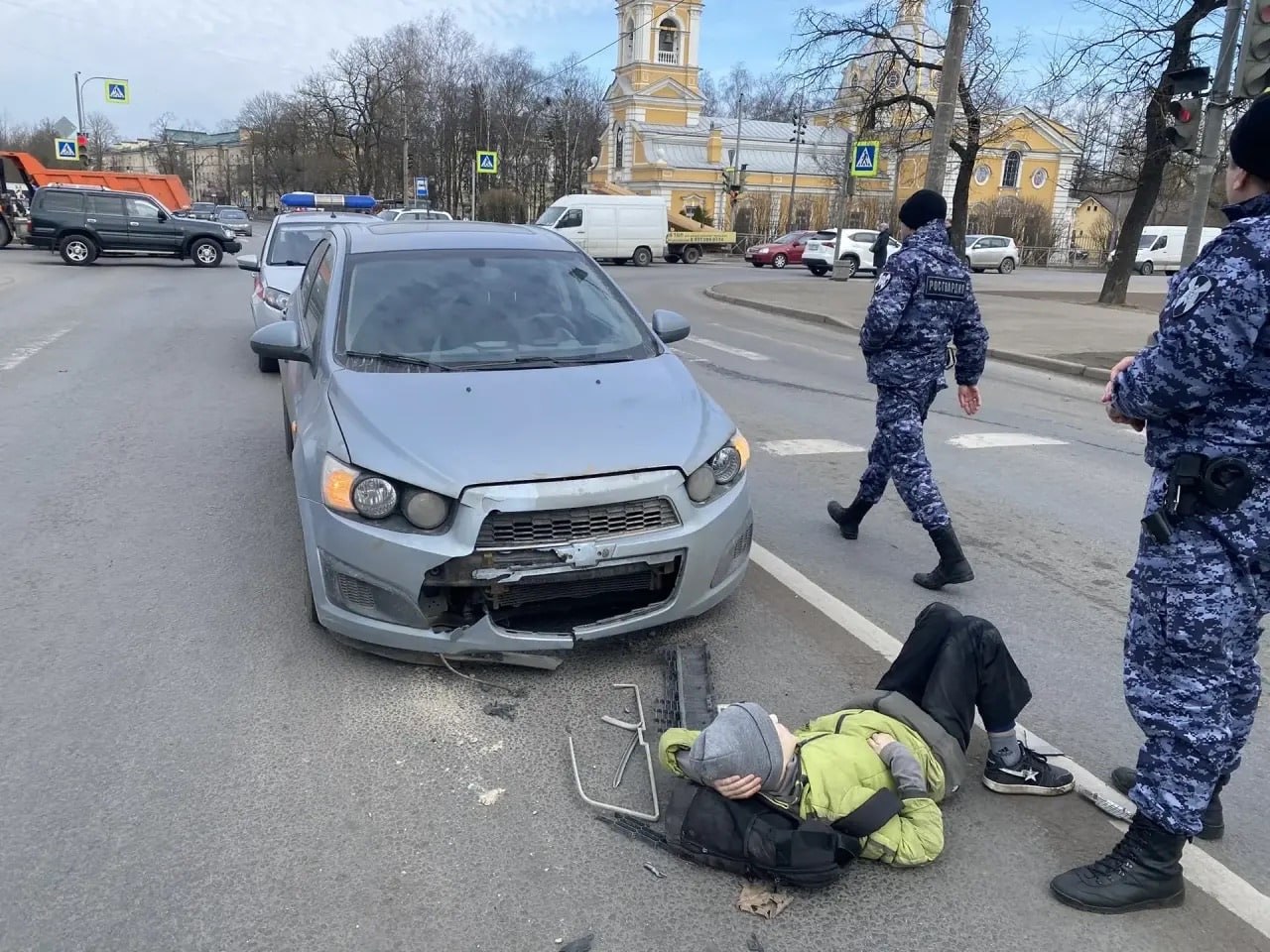 Дежурный наряд Росгвардии, патрулировавший территорию, заметил лежащего на проезжей части ребенка и стоящий рядом автомобиль с поломанным передним бампером.