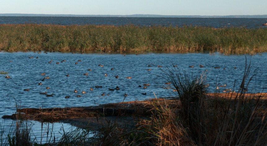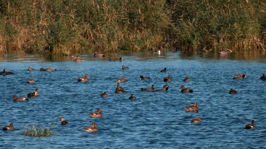 Кстати, место остановки для себя они выбрали отнюдь не случайно: оно защищено дамбой от сильных ветров, а на мелководье много корма. После того, как утки отдохнут, они вновь отправятся в путь, ведь впереди – нелегкая дорога.