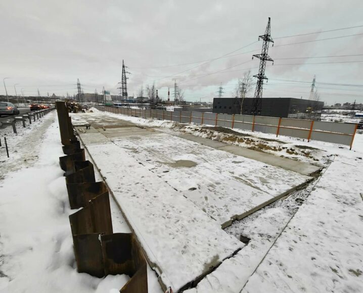 "Это железная штуковина, которая будет своего рода рельсами для пролета второго путепровода над Мурманским шоссе. Плюс готовимся расширять опоры: там есть две около существующего путепровода, но они узкие. Им надо добавить свай", - объясняет пресс-служба комитета.