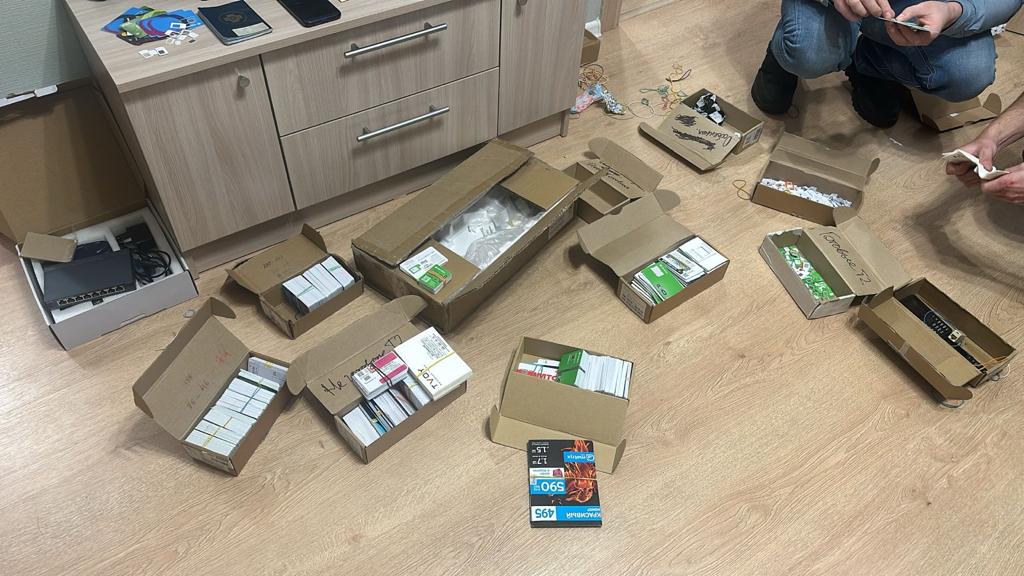 Во время обысков у криминального трио изъяли шесть телефонных шлюзов, пять мобильников, 580 слотов под сим-карту, 3961 симку, маршрутизатор и роутер.