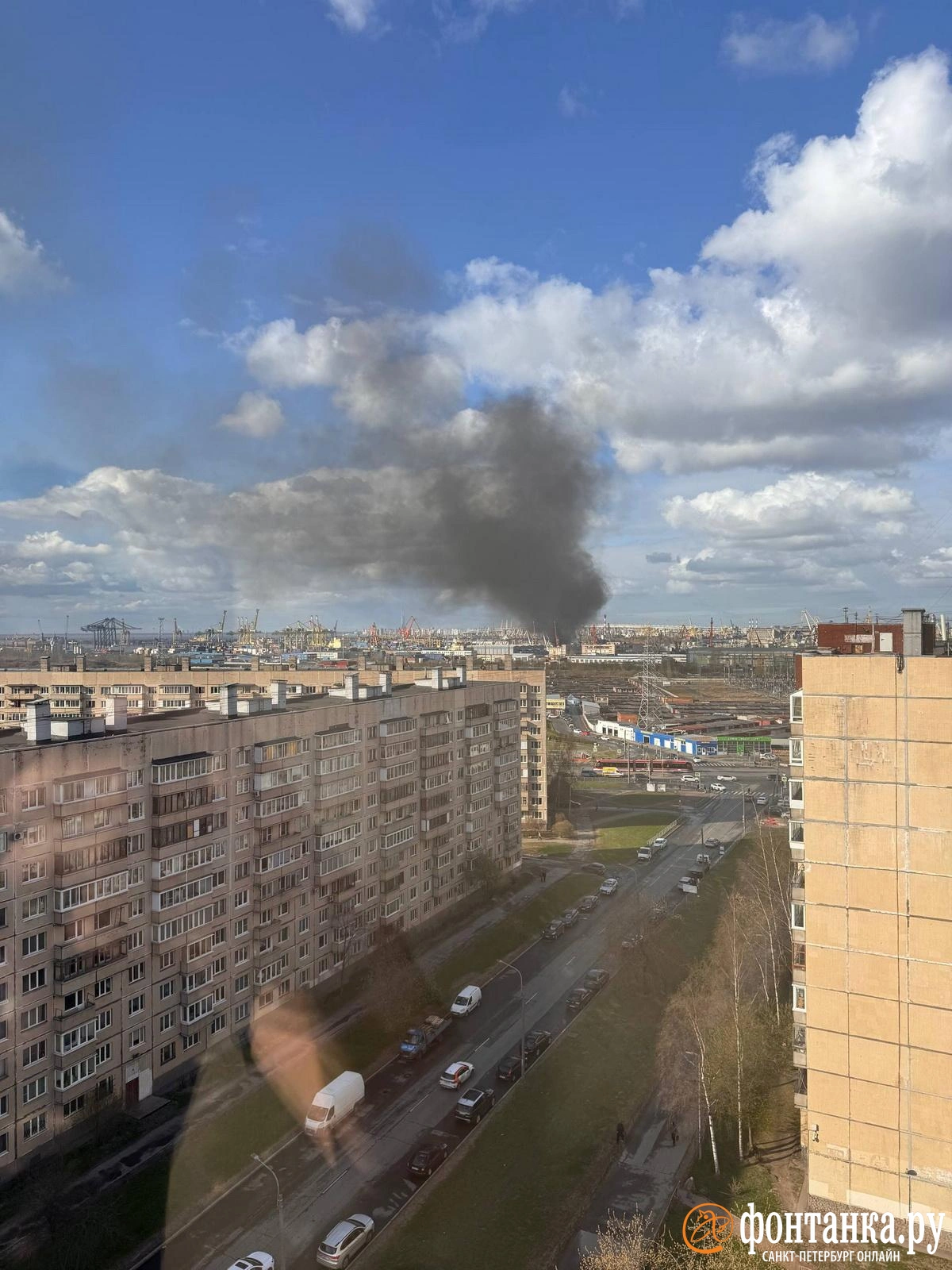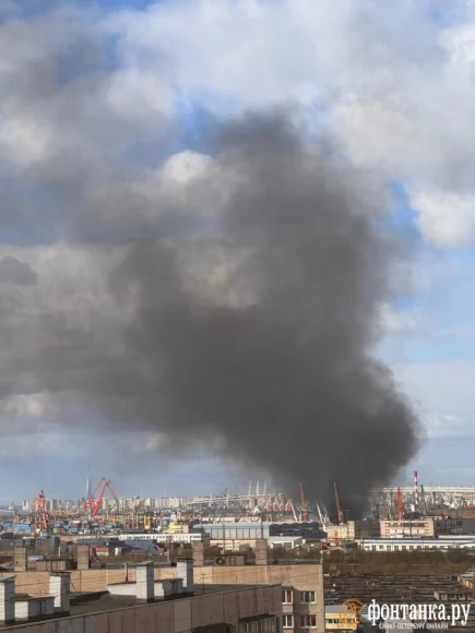 В субботу днем в Большом порту, расположенном в Кировском районе Петербурга, загорелся контейнер с резиной – дымит до сих пор и очень сильно.