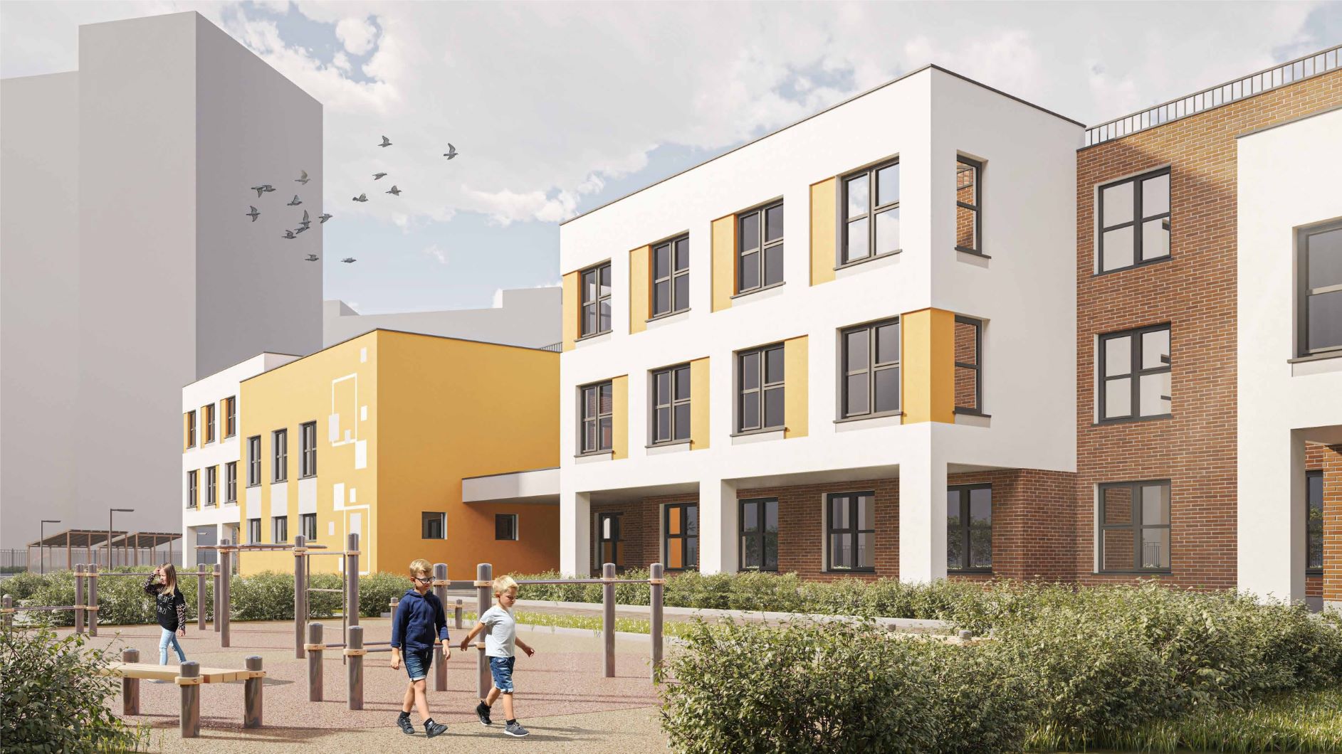 Как рассказали в компании, в здании разместятся 16 групп, шесть из которых — ясельные. Помимо игровых и спален, здесь предусмотрены музыкальный и физкультурный залы, кружковые комнаты, кабинеты психолога и логопеда, медицинский блок и пищеблок. Также в саду оборудуют бассейн и соляную комнату.
