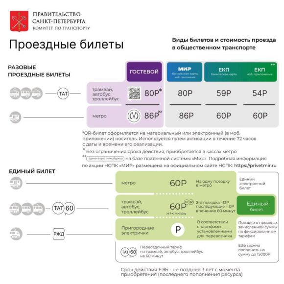 При оплате «Подорожником» и «Единой картой петербуржца» наземный и подземный транспорт теперь будет стоить одинаково: 60 рублей за одну поездку (раньше за метро по «Подорожнику» платили 56 руб., за автобусы-троллейбусы – по 51 рублю).