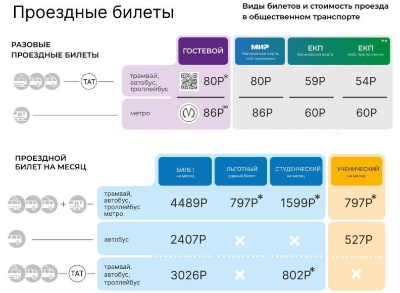 Стоимость поездки в автобусах, троллейбусах и трамваях повысилась с 75 до 80 рублей, в метро – с 81 до 86 рублей.