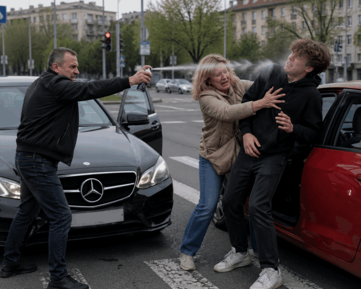 Немолодой водитель, повздорив с другими участниками дорожного движения в Выборгском районе Петербурга, окатил молодого человека струей из аэрозольного баллончика и скрылся. Его поймали через час в центре города.