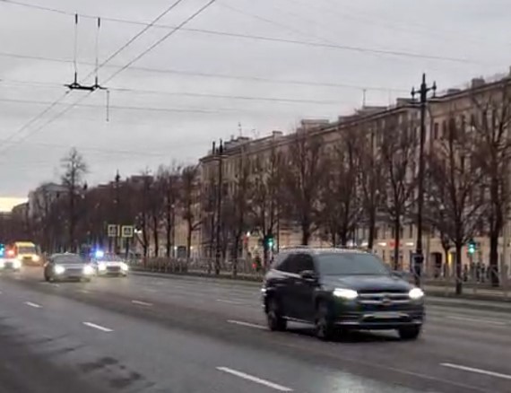 А догадку о приезде важной персоны подтвердило видео, на котором кортеж из полутора десятков машин мчится по совершенно пустому Московскому проспекту. По словам автора, запись была сделана в 16:26.