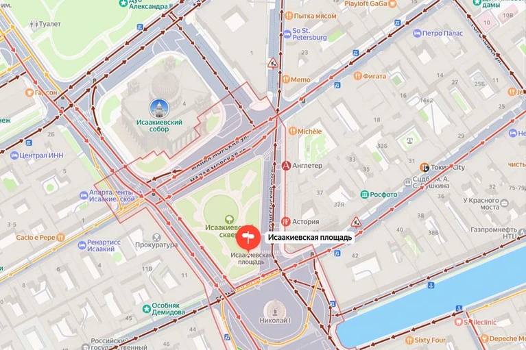 Во второй половине дня в петербургских пабликах писали о транспортном коллапсе в центре - в районе Исаакиевской площади, на Вознесенском проспекте.