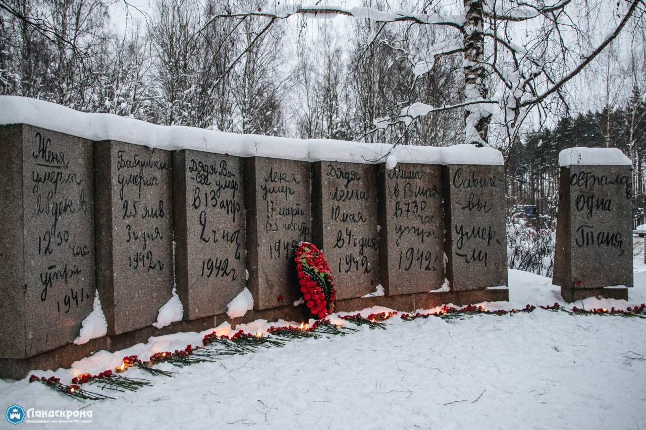 Накануне памятной даты болельщики петербургской футбольной команды «Зенит» провели акцию на мемориале «Цветок жизни» во Всеволожском районе Ленобласти. Фанаты возложили цветы на траурном кургане «Дневник Тани Савичевой» и зажгли файеры.