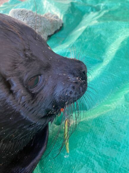 «Неопытная охотница, вероятно, перепутала добычу и получила такое необычное «украшение». Добрая доктор удалила крючок из ее верхней губы, а потом привезла нерпочку к нам в центр», – поведали в Фонде.