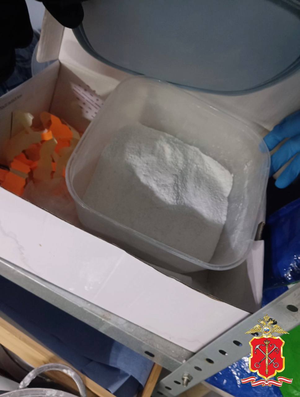 В поселке Левашово полицейские нашли два полимерных контейнера с веществом светлого цвета, 13 канистр с жидкостями (общий объем – более 210 литров) и лабораторное оборудование. Экспертиза показала, что в контейнерах хранилось 418,8 грамма амфетамина.