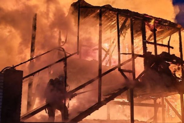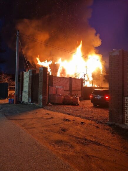 На кадрах непосредственно с места пожара, видно, как с территории участка выбегает полураздетый мужчина. Предположительно, загорелось на втором этаже дома, где в момент пожара были глава семьи и двое детей. Чтобы спастись, им пришлось перебираться на балкон соседнего дома. Успели они как раз вовремя – спустя минуты пламя охватило весь дом.