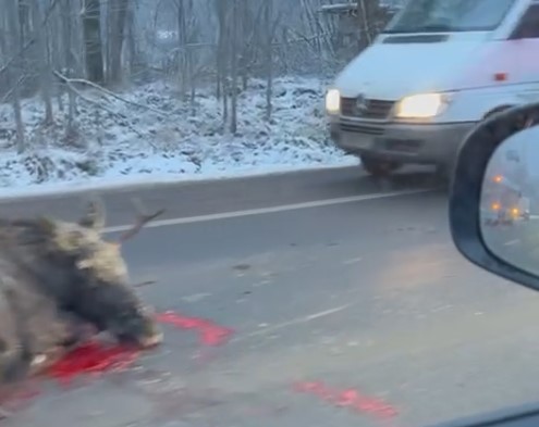 Свидетели описывают ДТП по-разному. По одной из версий, лося сбили по очереди две легковушки. Согласно другой, сохатый сперва попал под колеса легкового автомобиля, а затем получил удар от автобуса.