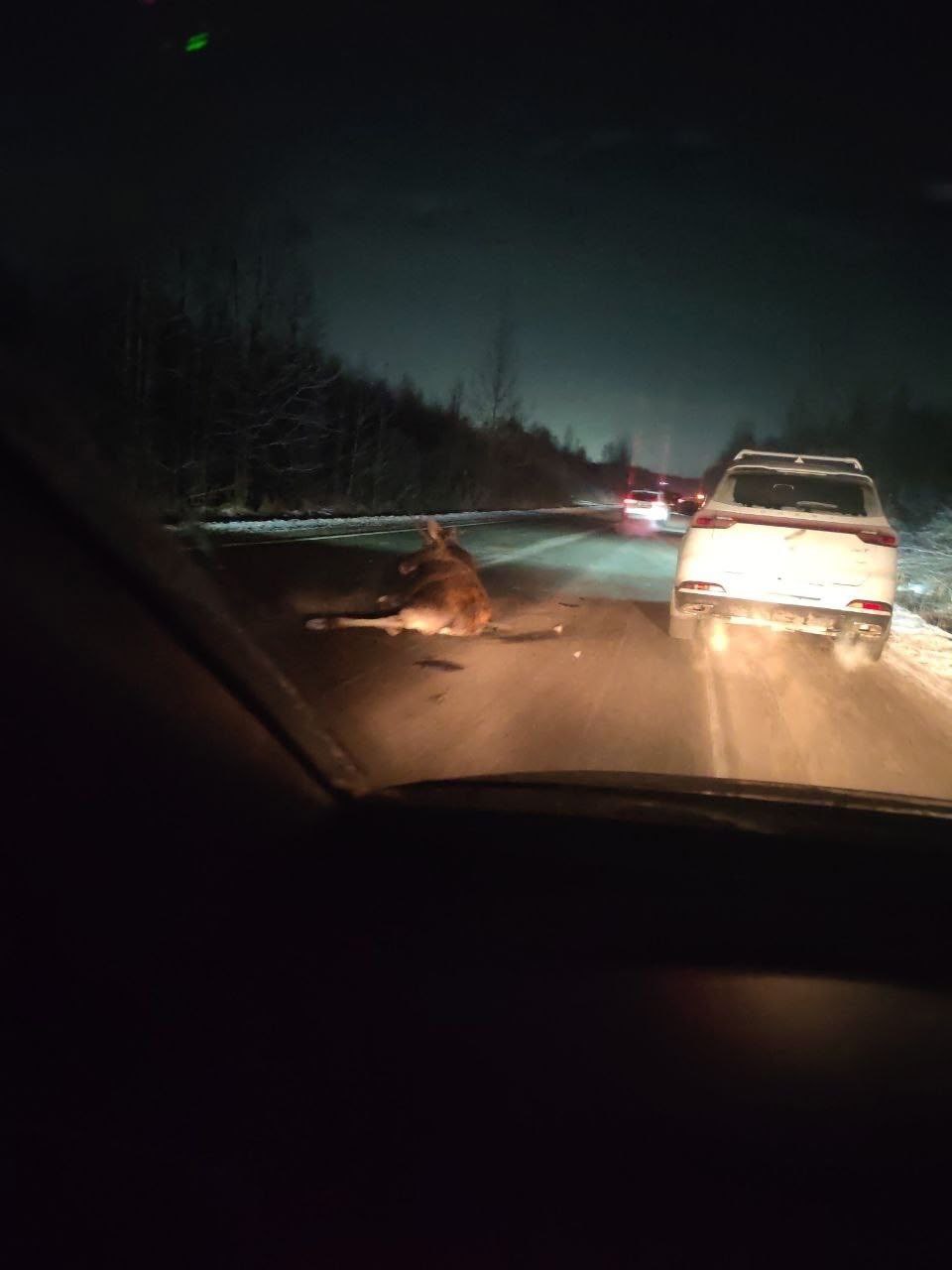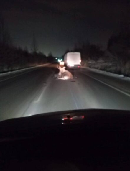 Крупного лося сбила машина в Приморском районе Петербурга. У животного было мало шансов выжить.