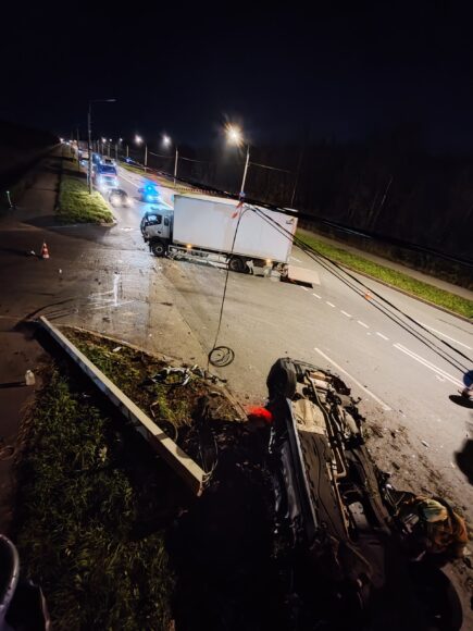 Полиция проводит проверку по факту аварии в поселке Шушары, где перевернулся на крышу автомобиль «Альфа Ромео».